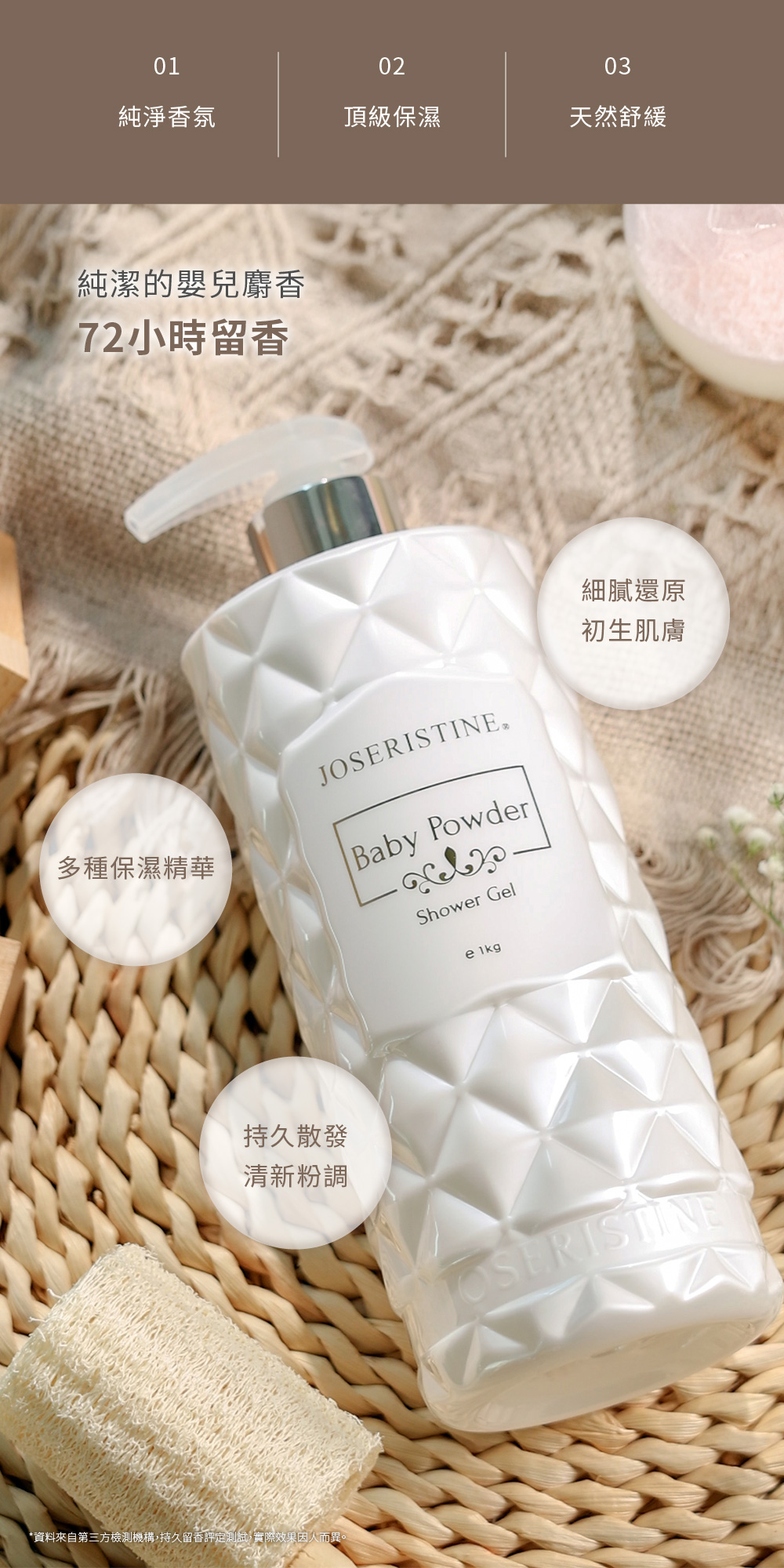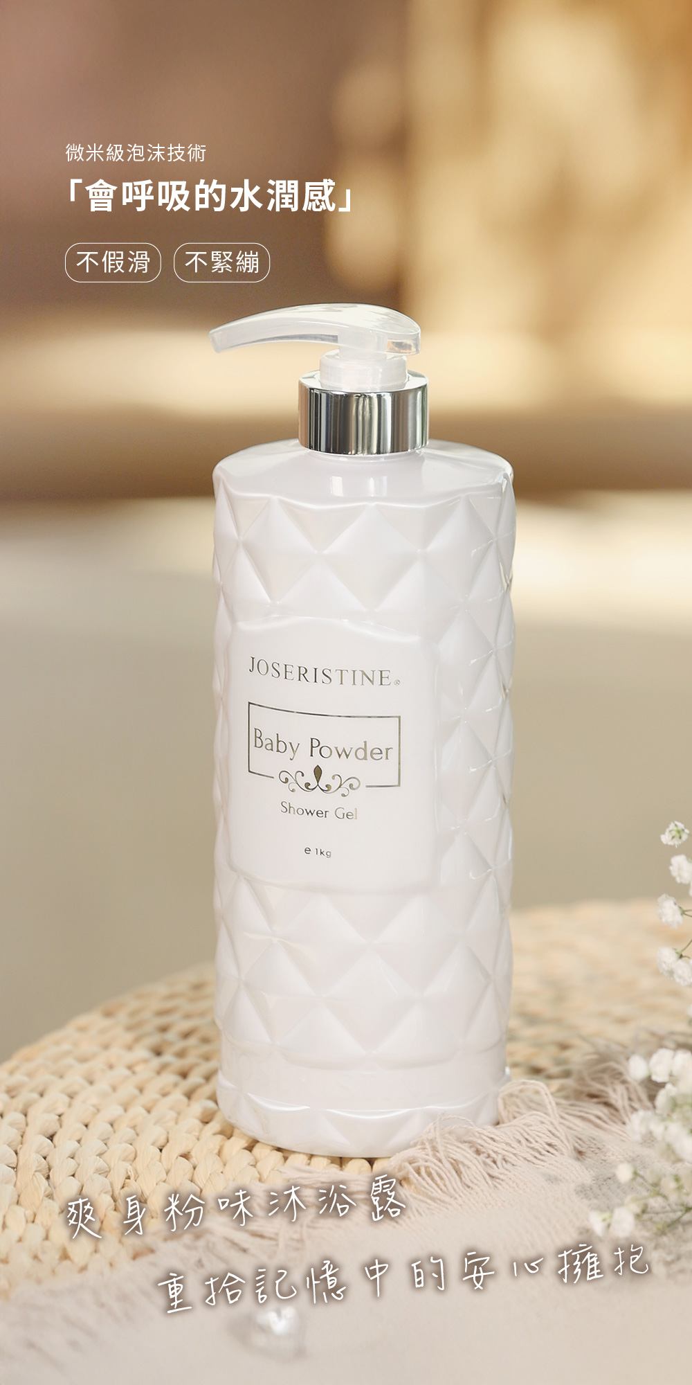 爽身粉味沐浴露泡沫豐盈細膩,蘊含維他命B5、B3及天然蔗糖等多重保濕成分,提升肌膚水嫩感。沐浴時散發清新嬰兒爽身粉香味,讓人感覺親切溫暖,享受快樂的沐浴時刻。